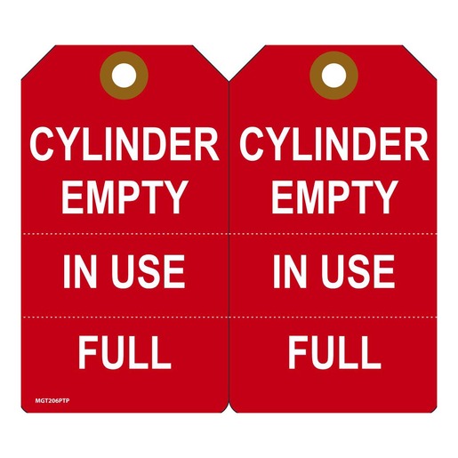 Accuform Signs “CYLINDER EMPTY IN USEFULL” WhiteRed English Perforated Cylinder Status Safety Sign measuring 5 34″ X 3 14″ is printed made of 15 mil rigid RP-Plastic for more strength and enduringness. Compressed air sign is ideally designed to identify the hazards of compressed air vessels and supply line pressures. Relatively bendable tag is perfect for indoor and outdoor temporary tagging applications. High-strength plastic tag being water-resistant can be used in all weather conditions. Flexible tag will not readily break down over a wide temperature range. Durable tag with an abrasion resistant writable surface tolerates stretching and ripping. Tag has a 38″ hole at the top reinforced with metal grommet to avoid pull off. Tag provides resistance against tear, weather and chemical in dirty as well as greasy environments. Tag with mar-resistant, matte surface is sold as 25 per pack.