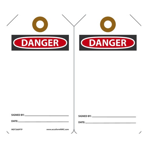 Accuform Signs 5 34" X 3 14" 10 mils PF-Cardstock Accident Prevention Safety Tag DANGER (BLANK) With Disciplinary Action Warning On Back (25 Per Pack)