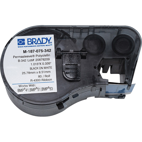 Brady BMP 41, BMP 51, BMP 53 PermaSleeve PS Wire Marking Sleeves, 3/16″ x 3/4″, White, 80/Cartridge