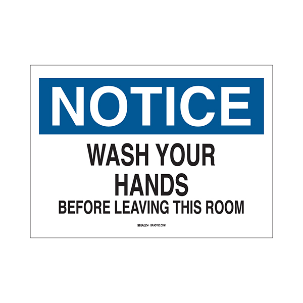 Brady “Notice Wash Your Hands Before Leaving This Room” Personal Hygiene Sign, Self-Sticking Polyester, 7″ x 10″, 1/Each