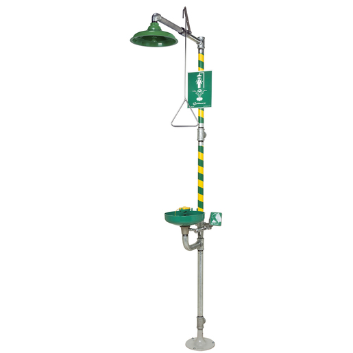 Haws Corrosion-Resistant Stainless Steel Combination Shower and EyeFace Wash Station features medically acclaimed AXION MSR eyeface wash head assembly. It is revolutionary inverted flow design provides a medically superior response consistent with all EMT, emergency room and doctors’ office protocols by sweeping contaminants away from the vulnerable nasal cavity. AXION MSR also offers a new hydrodynamic shower design that minimizes the strong physical pressure that drives the water to the outer rim making the distribution equal across the entire footprint of the flow. Shower breaks the streams of water into smaller individual droplets. Solid 1 14 type 304 stainless steel construction makes it sturdy corrosive resistant equipment. The unit is easy to install and to maintain. It meets the ANSI Z358.1 standards.