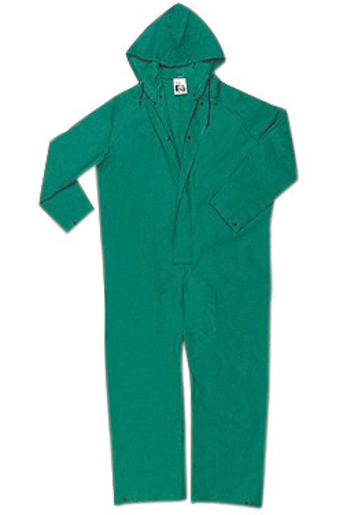MCR SAFETY GREEN DOMINATOR .42 MM POLYESTER AND PVC COVERALL WITH ATTACHED HOOD