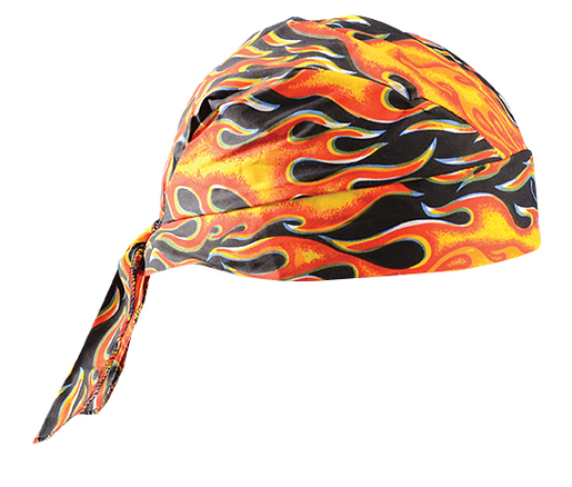OccuNomix Tuff Nougies Regular Big Flames Tie Hat is made of 100% cotton for comfort and durability. Rear tie hat with double cotton layer sweatband features holographic hangtag and plastic hook for easy wearing. Hat is designed to protect welders, construction workers and others to avoid skinscalp irritation from helmets, hardhats or other head shields. It absorbs annoying and distracting perspiration. It is ideal for workers with long hair to fit snugly, to protect hair from being drawn into machine parts such as chains, belts, rotating devices, suction devices, blowers and hair that can even be drawn into machines otherwise guarded with mesh. Hat is also used to protect a variety of workers from paint, plaster, dust or shop dirt and head protection from sun as well as wind.