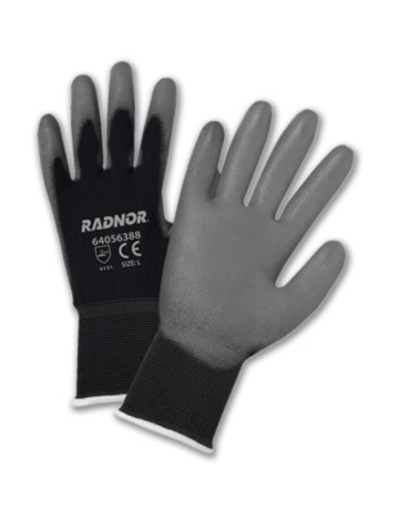 Radnor Premium Polyurethane Palm Coated Gloves are based on a seamless 15 gauge breathable nylon knit shell for comfort and enhanced tactile sensitivity.