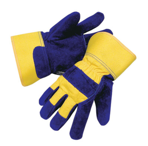 Radnor premium split leather cowhide gloves are Thinsulate lined for additonal warmth and have a waterproof barrier. Rugged work gloves offer a yellow canvas back, reinforced knuckle strap and rubberized safety cuff.